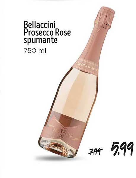 Ontdek de geweldige Bellaccini Prosecco Rose Spumante aanbieding in de nieuwste Jumbo folder. Naast deze aanbieding vind je nog veel meer aantrekkelijke kortingen. Je kunt de Bellaccini Prosecco Rose Spumante eenvoudig online bestellen via de Jumbo website of kopen in een winkel bij jou in de buurt.