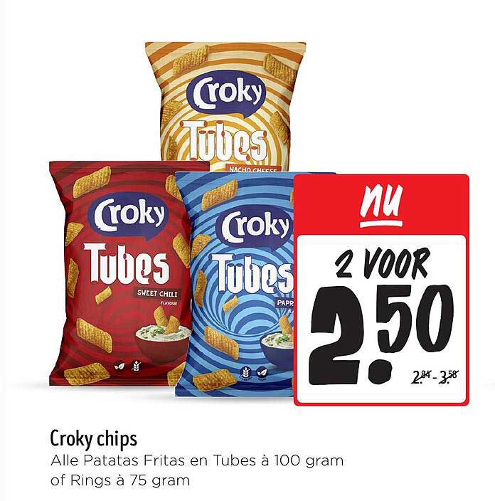 Als je op zoek bent naar een smakelijke snack, dan is deze aanbieding van Crokly chips iets voor jou! Tijdens de actieperiode van 15 oktober tot en met 21 oktober 2025 kun je genieten van 2 pakketten Crokly chips voor slechts €2,50. Dit is de ideale gelegenheid om je voorraad snacks aan te vullen voor een filmavond of een feestje met vrienden.