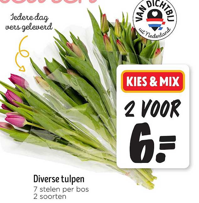 Bekijk de Diverse Tulpen aanbieding bij Jumbo! Deze fantastische aanbieding is nu beschikbaar in de nieuwste Jumbo folder. Profiteer van deze kans en bespaar flink op je aankoop.