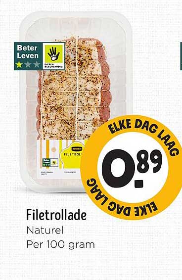 Bekijk nu de Filetrollade Naturel Per 100 gram aanbieding in de Jumbo folder. Deze aanbieding is geldig van 09-04-2025 tot en met 15-04-2025.