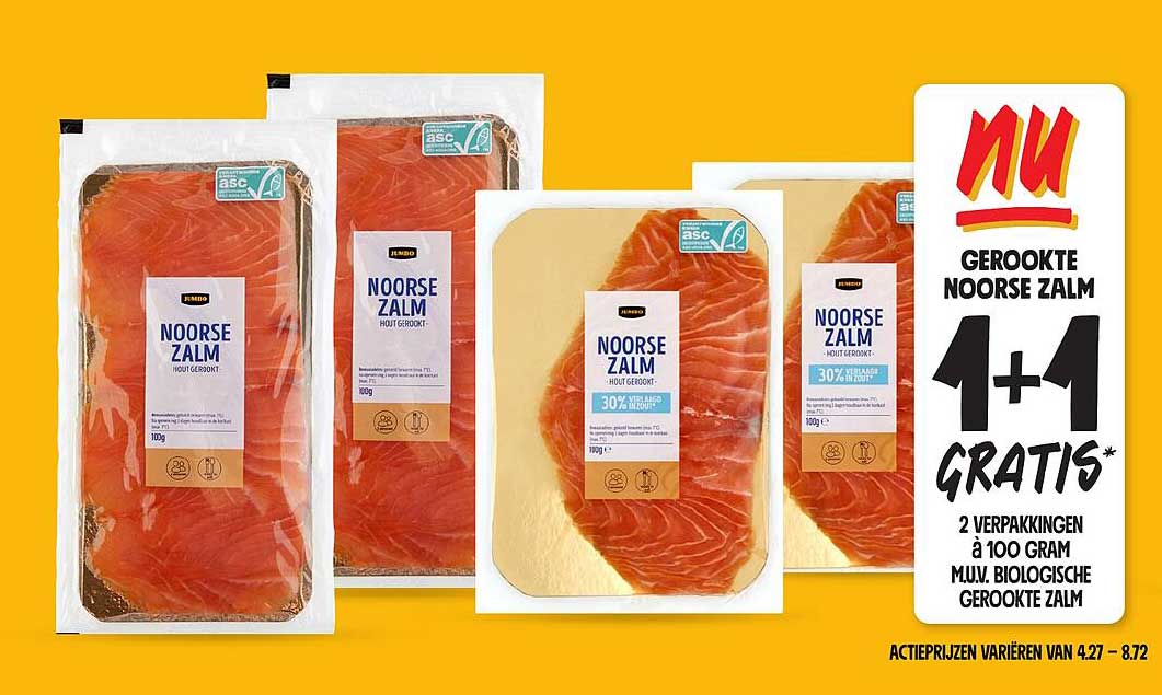 Gerokte Noorse Zalm 1+1 Gratis* aanbieding bij Jumbo