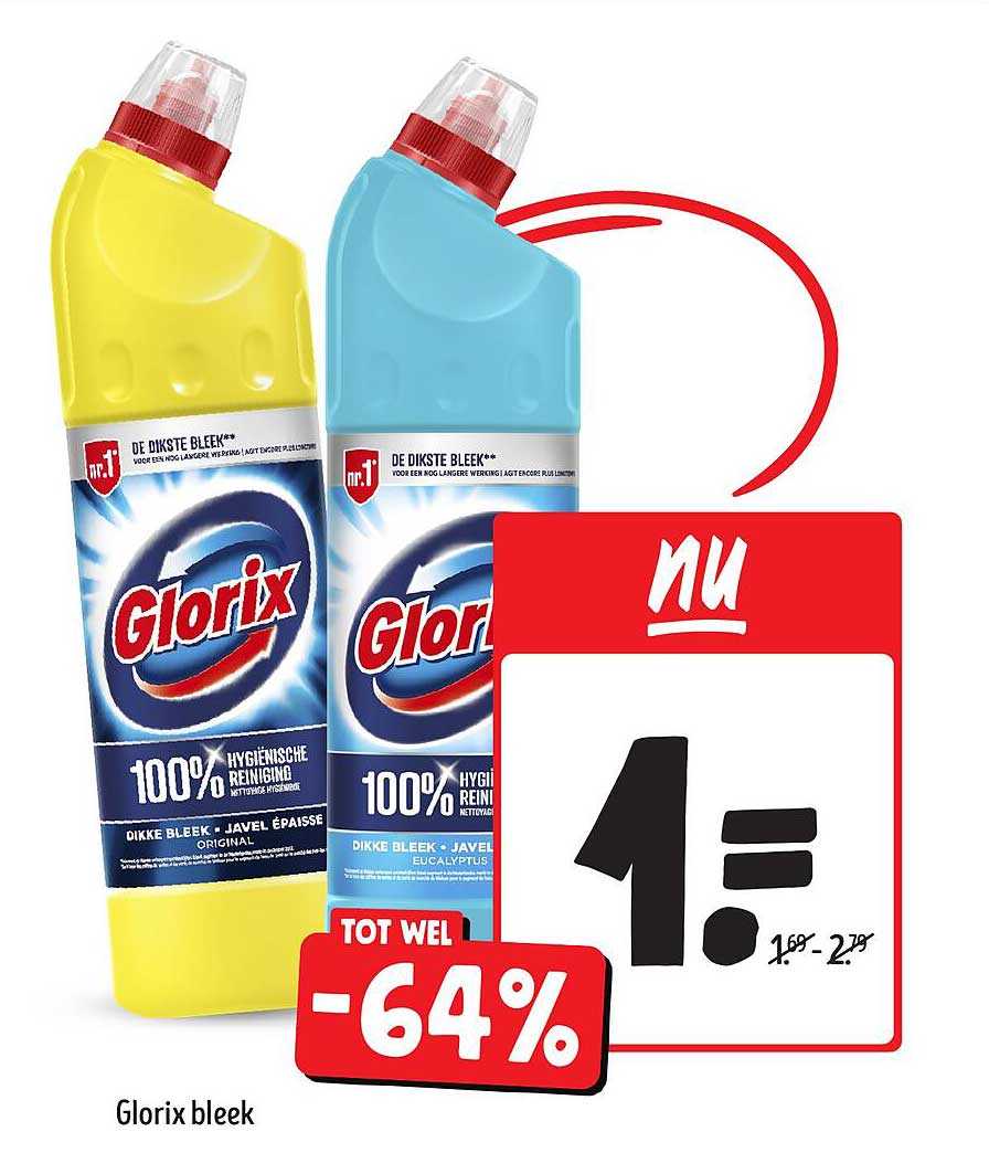 Ben je op zoek naar een krachtige reiniger die ook nog eens extra voordelig is? Op deze pagina kun je profiteren van een fantastische aanbieding op Glorix bleek, dat bekend staat om zijn effectieve hygiënische reiniging. Met een korting van maar liefst 64% is dit hét moment om jouw voorraad aan te vullen!