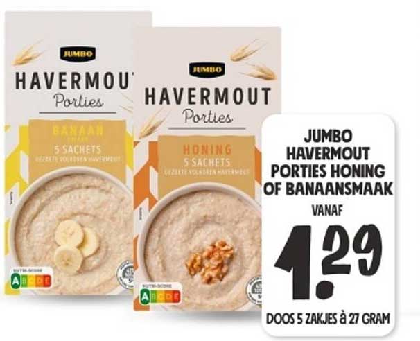 Ontdek de Jumbo Havermout Porties Honing Of Bananen Smaak