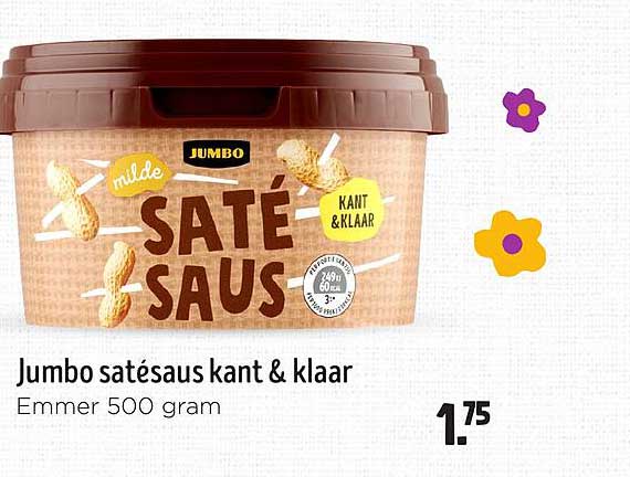 Met een prijs van slechts €1,75 is deze Jumbo satésaus een absolute koopjesjager! In vergelijking met andere merken biedt Jumbo een levensgrote besparing, zonder in te boeten op kwaliteit. Normaal gesproken betaal je vaak meer voor kleinere hoeveelheden in de winkel. Met deze aanbieding haal je niet alleen een heerlijke saus in huis, maar bespaar je ook geld!
