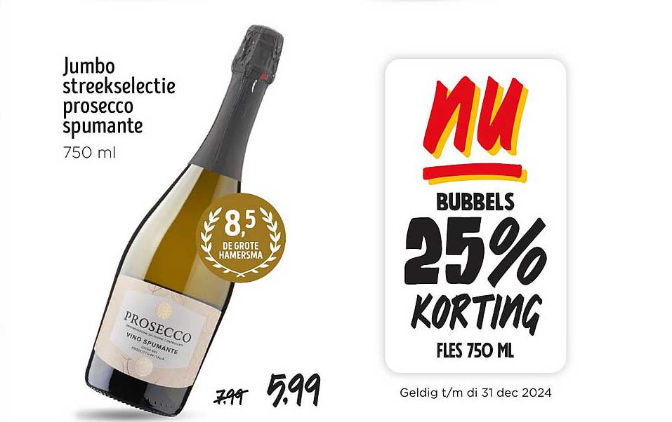 Bekijk de Jumbo Streekselectie Prosecco Spumante aanbieding bij Jumbo! Deze fantastische aanbieding is nu beschikbaar in de nieuwste Jumbo folder. Profiteer van deze kans en bespaar flink op je aankoop.