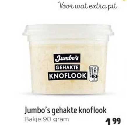 Bekijk nu de Jumbo's gehakte knoflook Bakje 90 gram aanbieding in de Jumbo folder. Deze aanbieding is geldig van 21-05-2025 tot en met 27-05-2025.