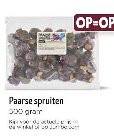 Bekijk de Paarse Spruiten aanbieding bij Jumbo! Deze fantastische aanbieding is nu beschikbaar in de nieuwste Jumbo folder. Profiteer van deze kans en bespaar flink op je aankoop.