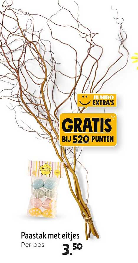 De lente is in aantocht en dat betekent dat Pasen weer voor de deur staat! Wat is er nu beter dan te genieten van een sfeervolle Paastak met vrolijke eitjes? Op deze pagina ontdek je een geweldige aanbieding van Jumbo, waar je dit prachtige decoratiestuk voor een aantrekkelijke prijs kunt bemachtigen. Ideaal om je huis op te fleuren en de paasstemming te verhogen!