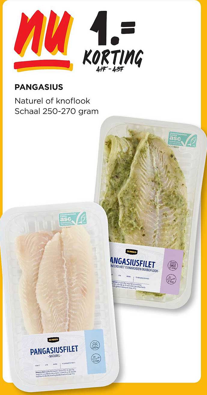 Bekijk de Pangasius aanbieding bij Jumbo! Deze fantastische aanbieding is nu beschikbaar in de nieuwste Jumbo folder. Profiteer van deze kans en bespaar flink op je aankoop.