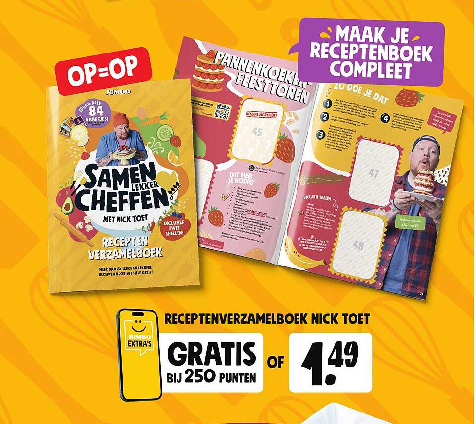 Bekijk nu de Receptenverzamelboek Nick Toet aanbieding in de Jumbo folder. Deze aanbieding is geldig van 01-10-2025 tot en met 07-10-2025.