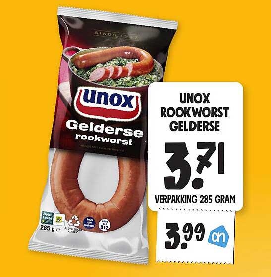 Bekijk de Unox Gelderse Rookworst aanbieding bij Jumbo! Deze fantastische aanbieding is nu beschikbaar in de nieuwste Jumbo folder. Profiteer van deze kans en bespaar flink op je aankoop.