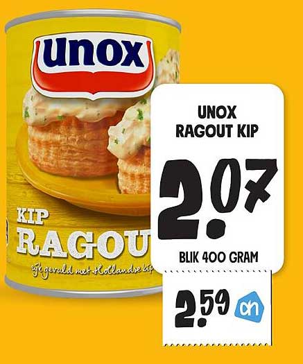 Bekijk de Unox Ragout Kip aanbieding bij Jumbo! Deze fantastische aanbieding is nu beschikbaar in de nieuwste Jumbo folder. Profiteer van deze kans en bespaar flink op je aankoop.
