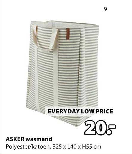Bekijk nu de ASKER wasmand aanbieding in de Jysk folder. Deze aanbieding is geldig van 06-10-2025 tot en met 19-10-2025.