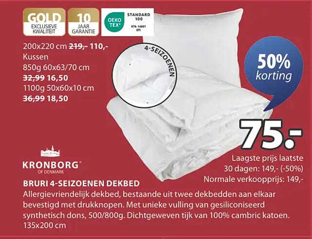 Dit fantastische dekbed is momenteel verkrijgbaar voor slechts €75,- met een korting van 50%. De normale verkoopprijs is €149,-. Dit is een uitstekende kans om te profiteren van een hoge kwaliteit voor een schappelijke prijs. Zorg ervoor dat je deze aanbieding niet mist, want de laagste prijs van de afgelopen 30 dagen was €149,-. Dat betekent dat je serieus kunt besparen op dit premium product!