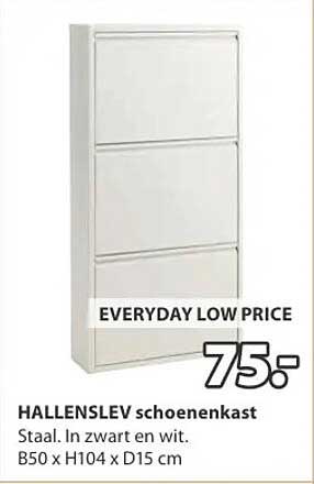 Deze HALLENSLEV schoenenkast is verkrijgbaar voor slechts €75,-, wat een geweldige prijs is in vergelijking met de reguliere marktwaarde. Met deze aanbieding bespaar je niet alleen geld, maar krijg je ook een stijlvolle en praktische opbergoplossing voor je schoenen. Waarom zou je deze kans laten liggen?