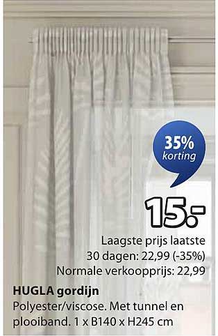 Als je op zoek bent naar een manier om je ruimtes op te fleuren en een aangename sfeer te creëren, dan is de HUGLA gordijn wellicht precies wat je nodig hebt. Met een aantrekkelijke korting van 35% is dit het ideale moment om je raamdecoratie een upgrade te geven. Van 20 oktober tot en met 2 november kun je profiteren van deze geweldige aanbieding. Dit prachtige gordijn biedt niet alleen privacy, maar voegt ook een stijlvol accent toe aan je interieur.