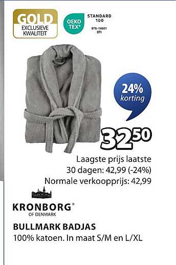 Bekijk nu de KRONBORG BULLMARK BADJAS aanbieding in de Jysk folder. Deze aanbieding is geldig van 07-04-2025 tot en met 21-04-2025.