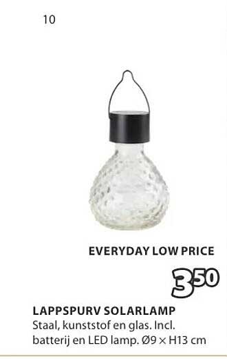 Bekijk nu de LAPPSPURV SOLARLAMP aanbieding in de Jysk folder. Deze aanbieding is geldig van 02-06-2025 tot en met 15-06-2025.