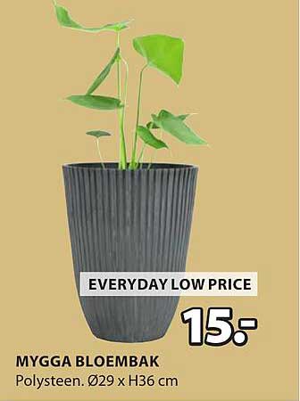 Bekijk nu de MYGGA BLOEMBAK aanbieding in de Jysk folder. Deze aanbieding is geldig van 12-05-2025 tot en met 25-05-2025.