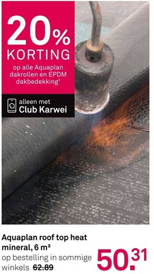 Bekijk nu de 20% KORTING op alle Aquaplan dakrollen en EPDM dakbedekking aanbieding in de Karwei folder. Deze aanbieding is geldig van 07-04-2025 tot en met 13-04-2025.