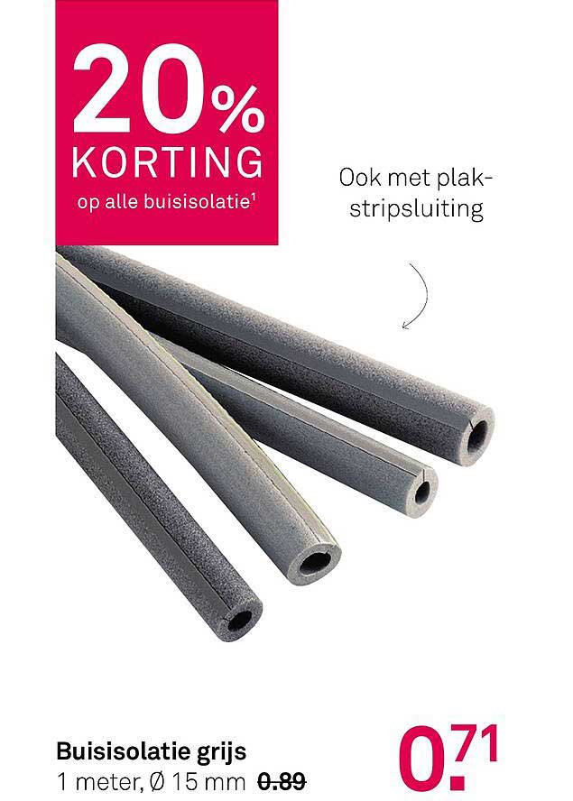Normaal gesproken kost deze buisisolatie €0,89 per meter, maar dankzij deze aanbieding betaal je slechts €0,71 per meter. Dit is een geweldige kans om te besparen op je renovatie of verbetering van je woning. Door nu te investeren in buisisolatie, bespaar je uiteindelijk veel meer op je energiekosten.