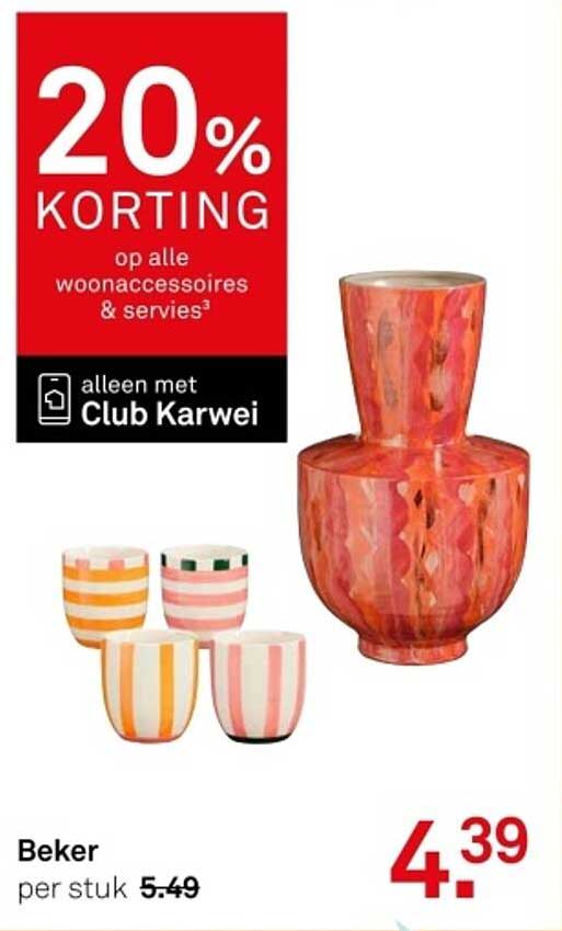 Heb je zin om je interieur een frisse look te geven? Op deze pagina vind je een geweldige aanbieding van Karwei met 20% korting op alle woonaccessoires en services! Dit is de perfecte kans om unieke producten aan te schaffen zonder je budget te overschrijden. Deze aanbieding loopt van 2025-05-26 tot en met 2025-06-01, dus mis het niet!