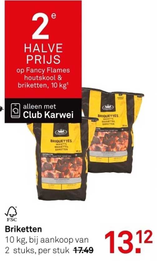 Bekijk nu de 2e HALVE PRIJS op Fancy Flames houtskool & briketten, 10 kg! aanbieding in de Karwei folder. Deze aanbieding is geldig van 22-04-2025 tot en met 27-04-2025.