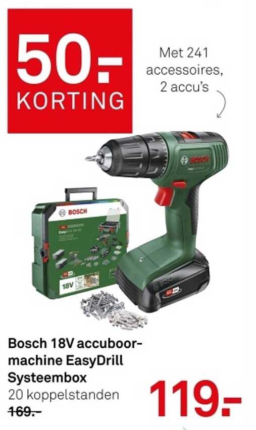Ben je op zoek naar de perfecte accuboormachine om al jouw klussen in en om het huis aan te pakken? Dan is de Bosch 18V accuboormachine EasyDrill Systeembox een absolute must-have! Met een groep van unieke accessoires en de hoge kwaliteit die je van Bosch gewend bent, biedt deze aanbieding de ideale gelegenheid om jouw gereedschapset uit te breiden. Deze aanbieding is geldig van 2025-06-09 tot en met 2025-06-15, dus mis het niet!