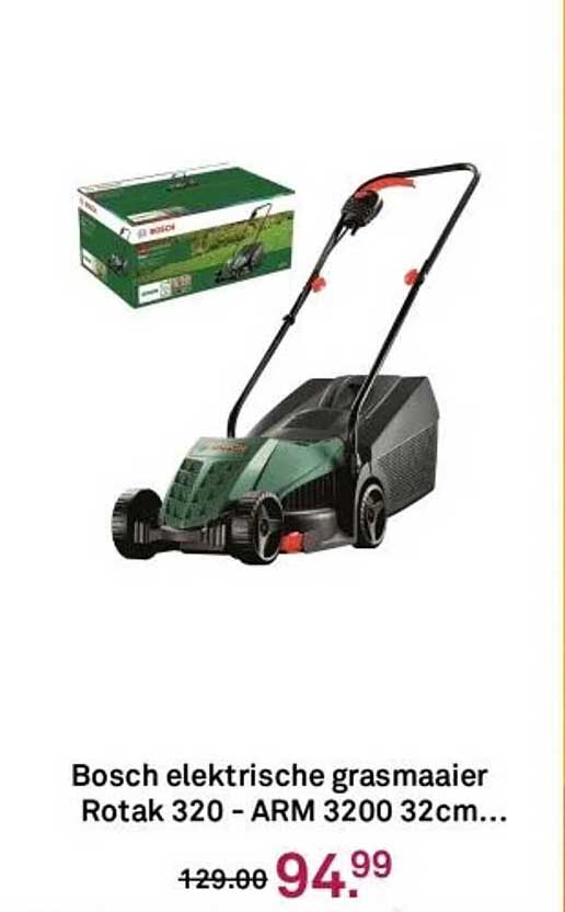 Ben je op zoek naar een betrouwbare en krachtige grasmaaier om je gazon in topconditie te houden? Dan is deze Bosch elektrische grasmaaier Rotak 320 precies wat je nodig hebt! Van 14 april tot en met 20 april 2025 profiteer je van een speciale aanbieding die je niet wilt missen!