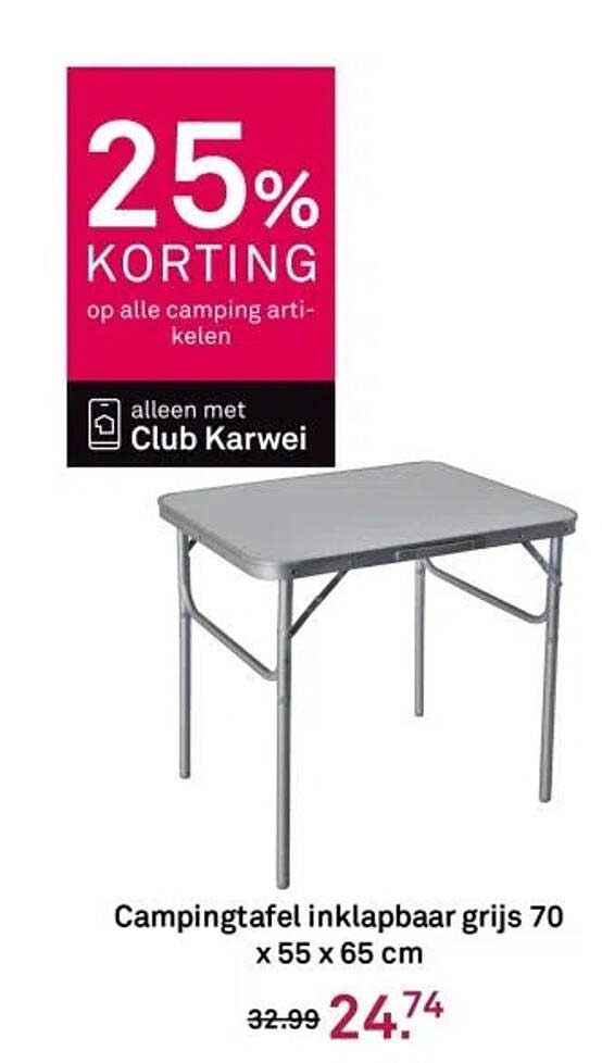 Bekijk nu de Campingtafel inklapbaar grijs 70 x 55 x 65 cm aanbieding in de Karwei folder. Deze aanbieding is geldig van 14-07-2025 tot en met 20-07-2025.