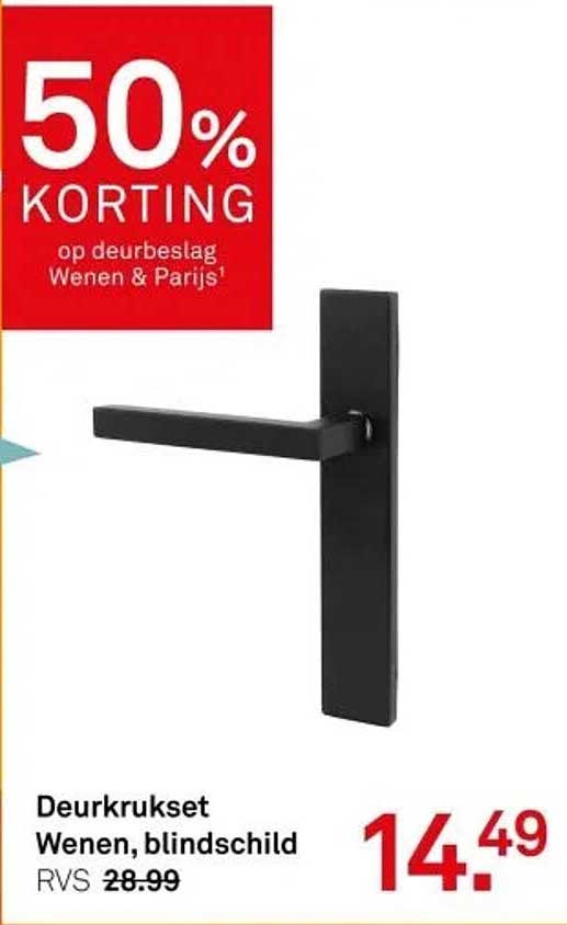 Ben je op zoek naar een stijlvolle en moderne oplossing voor je deuren? Dan is de deurkrukset Wenen met blindschild echt iets voor jou! Met deze aanbieding heb je 50% korting, en dat maakt het een ideale kans om je interieur een upgrade te geven. Deze set combineert functionaliteit met een hedendaags design, perfect voor elke ruimte in huis.