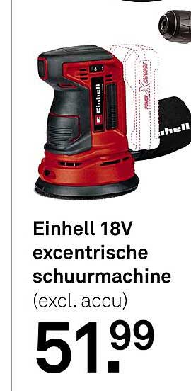 Ben je op zoek naar een krachtige en efficiënte schuurmachine die jouw klussen in en om het huis een stuk eenvoudiger maakt? Dan is de Einhell 18V excentrische schuurmachine precies wat je nodig hebt! Met zijn uitstekende prestaties en gebruiksvriendelijke design, is het de ideale partner voor het schuren van diverse materialen. Dit is de perfecte kans om je gereedschapscollectie uit te breiden met een topkwaliteit schuurmachine tegen een aantrekkelijke prijs.