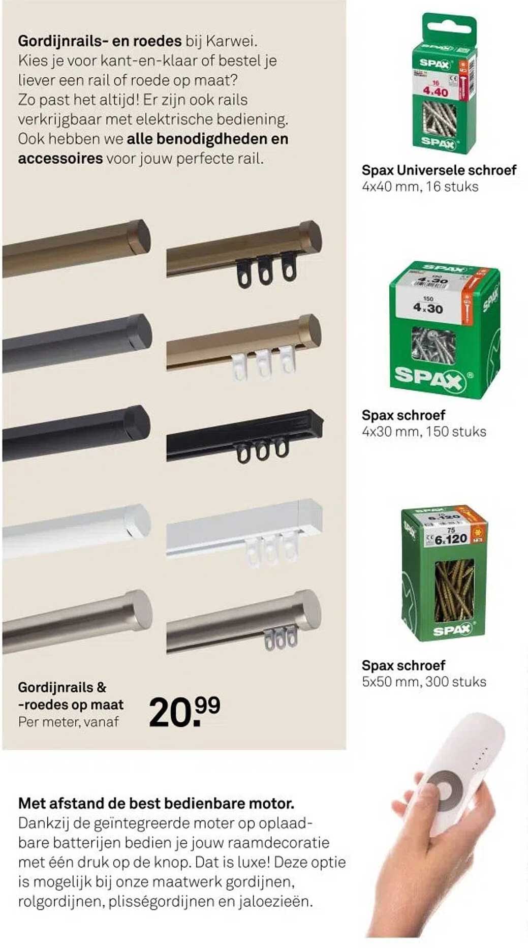 Bekijk nu de Gordijnrails- en roedes op maat vanaf 20.99 aanbieding in de Karwei folder. Deze aanbieding is geldig van 29-09-2025 tot en met 31-12-2025.