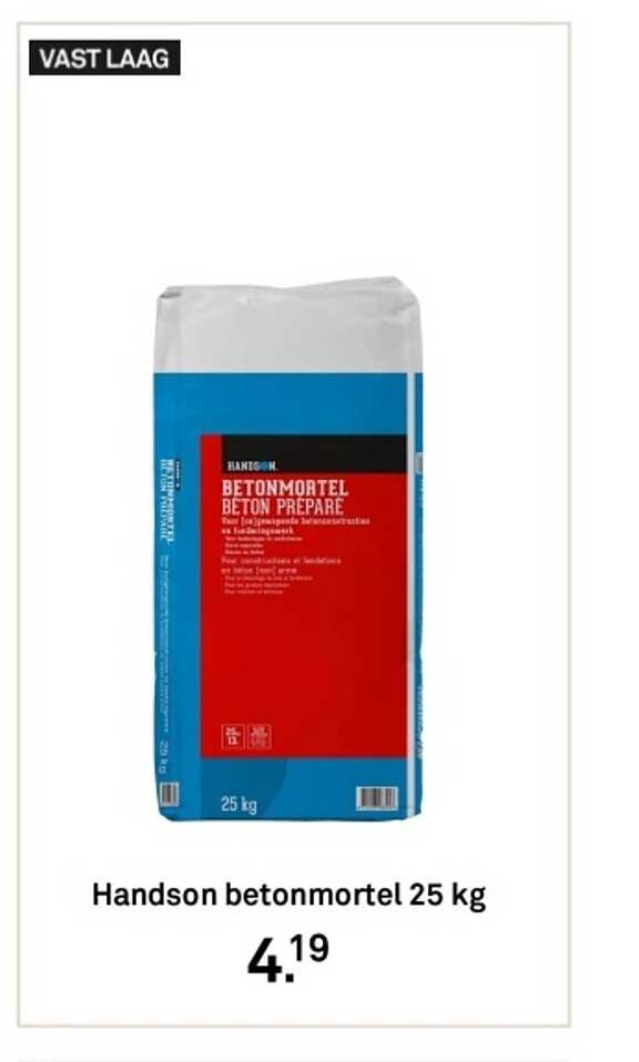 Ontdek de geweldige Handson Betonmortel 25 Kg aanbieding in de nieuwste Karwei folder. Naast deze aanbieding vind je nog veel meer aantrekkelijke kortingen. Je kunt de Handson Betonmortel 25 Kg eenvoudig online bestellen via de Karwei website of kopen in een winkel bij jou in de buurt.