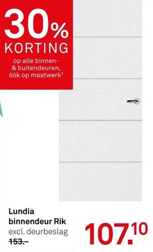 Normaal gesproken kost de Lundia binnendeur Rik €153,-, maar met de huidige korting betaal je nu slechts €107,10! Dit betekent een besparing van €45,90, wat deze aanbieding extra aantrekkelijk maakt. Mis deze kans niet om te investeren in een kwaliteitsdeurtje voor een scherpe prijs.