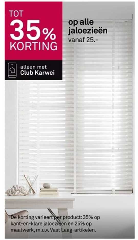 Ben je op zoek naar een manier om je interieur een frisse uitstraling te geven? Dan is deze aanbieding van Karwei precies wat je nodig hebt! Van 7 tot 13 april 2025 profiteer je van een korting tot maar liefst 35% op alle jaloezieën. Deze aanbieding biedt een prachtige kans om zowel functionaliteit als stijl in je huis te integreren.
