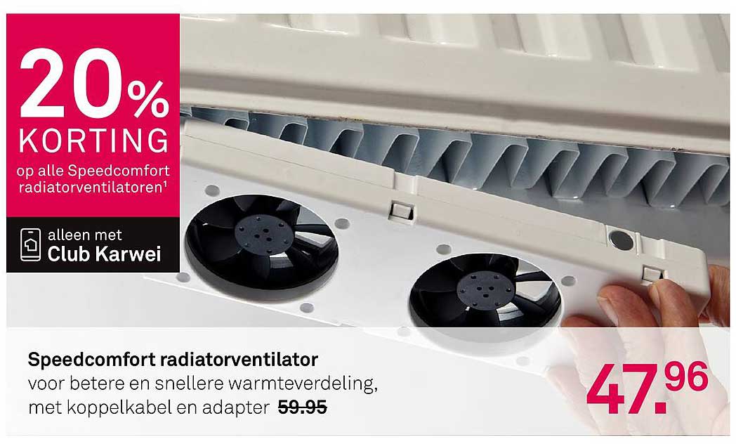 Bekijk nu de Speedcomfort radiatorventilator aanbieding in de Karwei folder. Deze aanbieding is geldig van 27-10-2025 tot en met 09-11-2025.