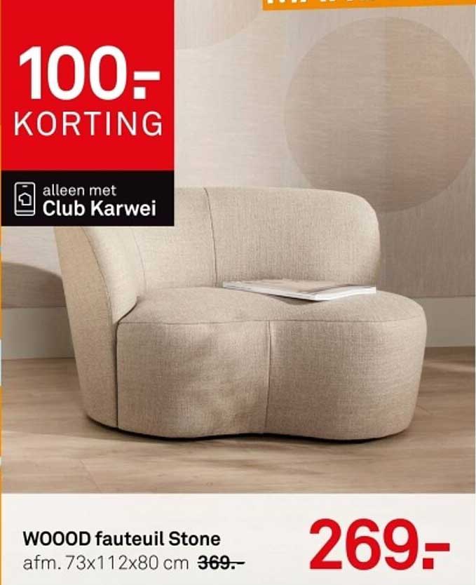 Bekijk nu de WOOOD fauteuil Stone aanbieding in de Karwei folder. Deze aanbieding is geldig van 13-06-2025 tot en met 15-06-2025.