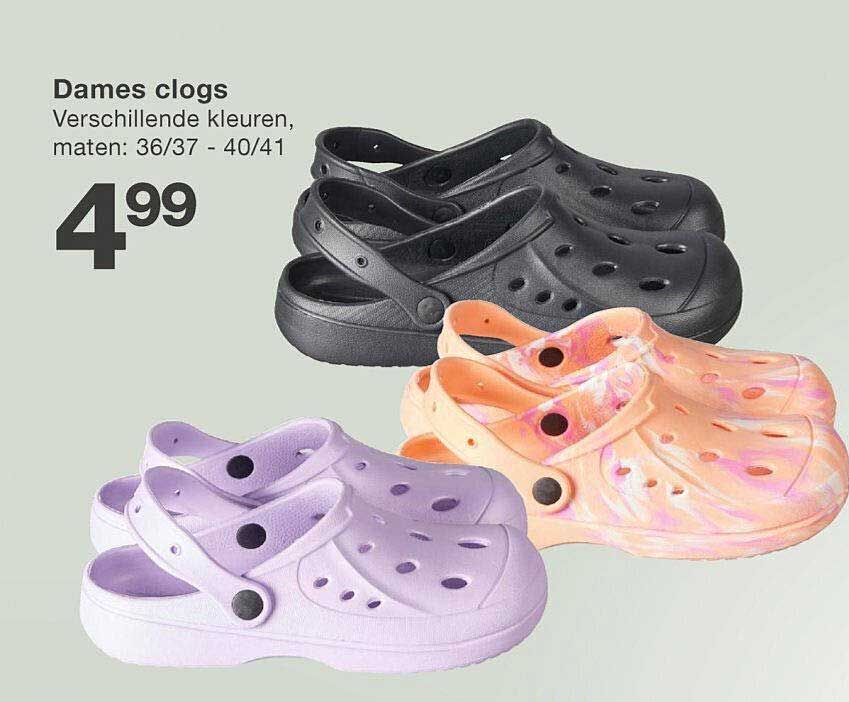 Bekijk de Dames Clogs aanbieding bij KiK! Deze fantastische aanbieding is nu beschikbaar in de nieuwste KiK folder. Profiteer van deze kans en bespaar flink op je aankoop.