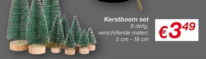 Bekijk nu de Kerstboom set 9 delig, verschillende maten: 5 cm - 18 cm aanbieding in de KiK folder. Deze aanbieding is geldig van 09-10-2025 tot en met 23-10-2025.
