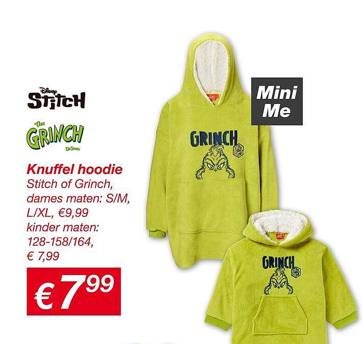 Bekijk nu de Knuffel hoodie Stitch of Grinch aanbieding in de KiK folder. Deze aanbieding is geldig van 03-11-2025 tot en met 09-11-2025.