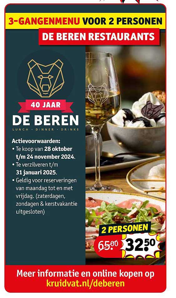 3-Gangenmenu Voor 2 Personen De Beren Restaurants aanbieding bij Kruidvat