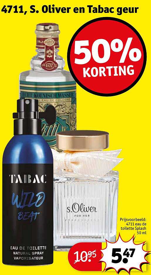 Bekijk de 4711, S. Oliver En Tabac Geur aanbieding bij Kruidvat! Deze fantastische aanbieding is nu beschikbaar in de nieuwste Kruidvat folder. Profiteer van deze kans en bespaar flink op je aankoop.