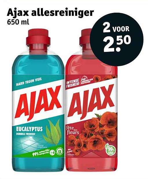 Bekijk de Ajax Allesreiniger aanbieding bij Kruidvat! Deze fantastische aanbieding is nu beschikbaar in de nieuwste Kruidvat folder. Profiteer van deze kans en bespaar flink op je aankoop.