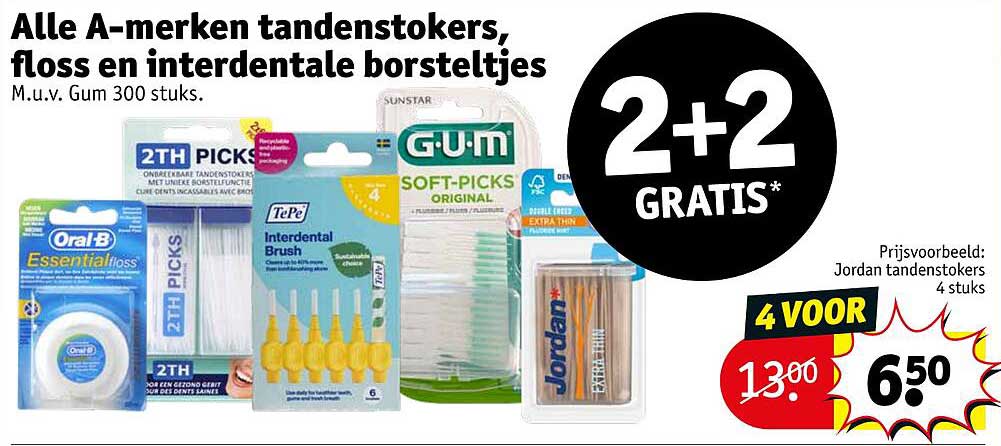 Bekijk nu de Alle A-merken tandenstokers, floss en interdentale borsteltjes M.u.v. Gum 300 stuks. aanbieding in de Kruidvat folder. Deze aanbieding is geldig van 14-04-2025 tot en met 20-04-2025.