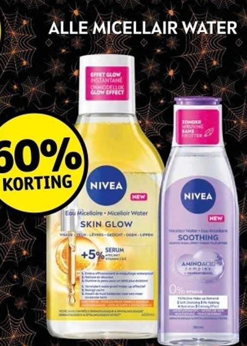 Ben je op zoek naar de perfecte manier om je huid te reinigen en te verfrissen? Dan is deze aanbieding echt iets voor jou! Tijdens de kortingsperiode van 2025-10-28 tot en met 2025-11-02 krijg je maar liefst 60% korting op ALLE micellair waterproducten van NIVEA! Het ideale moment om jouw favoriete gezichtsreinigers in te slaan.