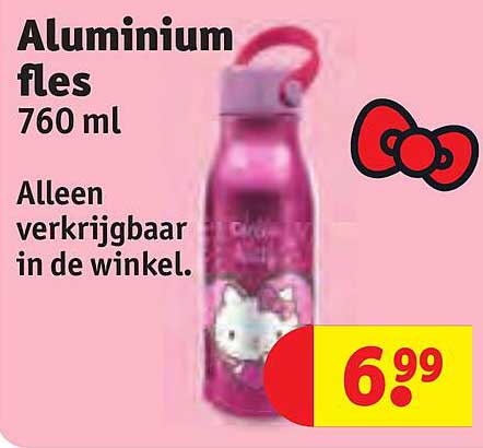 Bekijk de Aluminium Fles aanbieding bij Kruidvat! Deze fantastische aanbieding is nu beschikbaar in de nieuwste Kruidvat folder. Profiteer van deze kans en bespaar flink op je aankoop.