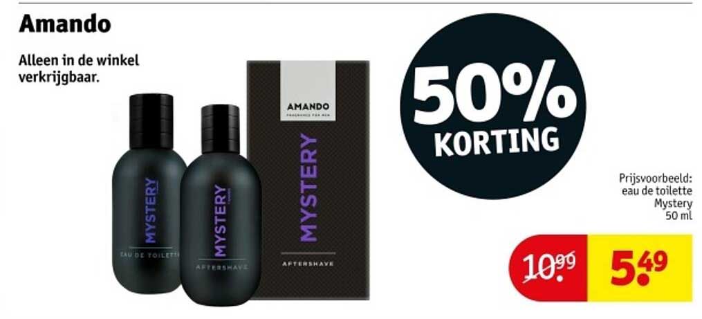 Bekijk nu de Amando Mystery Eau de Toilette aanbieding in de Kruidvat folder. Deze aanbieding is geldig van 14-10-2025 tot en met 19-10-2025.