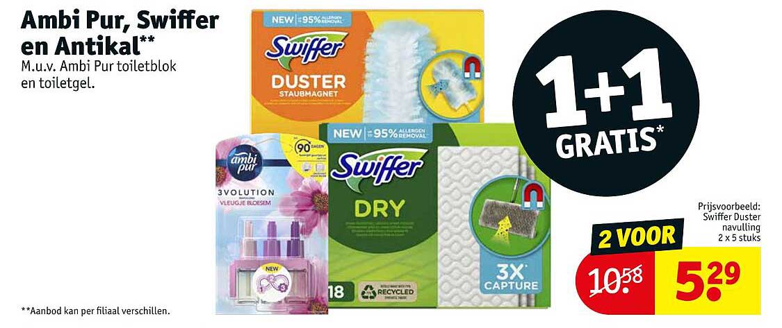 Bekijk de Ambi Pur, Swiffer En Antikal** aanbieding bij Kruidvat! Deze fantastische aanbieding is nu beschikbaar in de nieuwste Kruidvat folder. Profiteer van deze kans en bespaar flink op je aankoop.