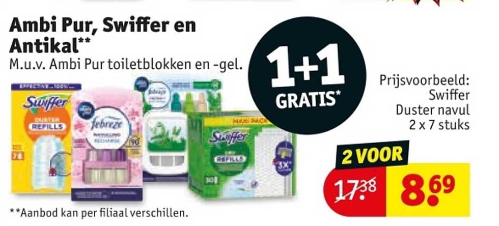 Maak je huis schoon en fris met de speciale aanbieding van Kruidvat! Deze promotie omvat een selectie van Ambi Pur, Swiffer en Antikal producten, waardoor je nu eenvoudig de perfecte oplossingen voor huishoudelijke schoonmaak kunt vinden. Van luchtverfrissers tot handige schoonmaaktools, alles wat je nodig hebt om je huis te laten stralen, vind je hier. Dit is de kans om je favoriete producten in te slaan en tegelijkertijd te profiteren van geweldige kortingen!